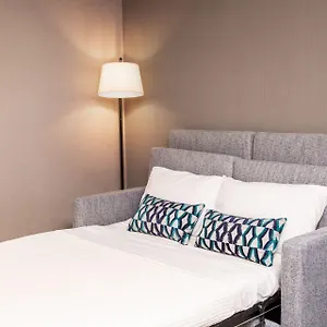 The rooms also feature a sofa bed. Some units offer views of Elliott Bay.